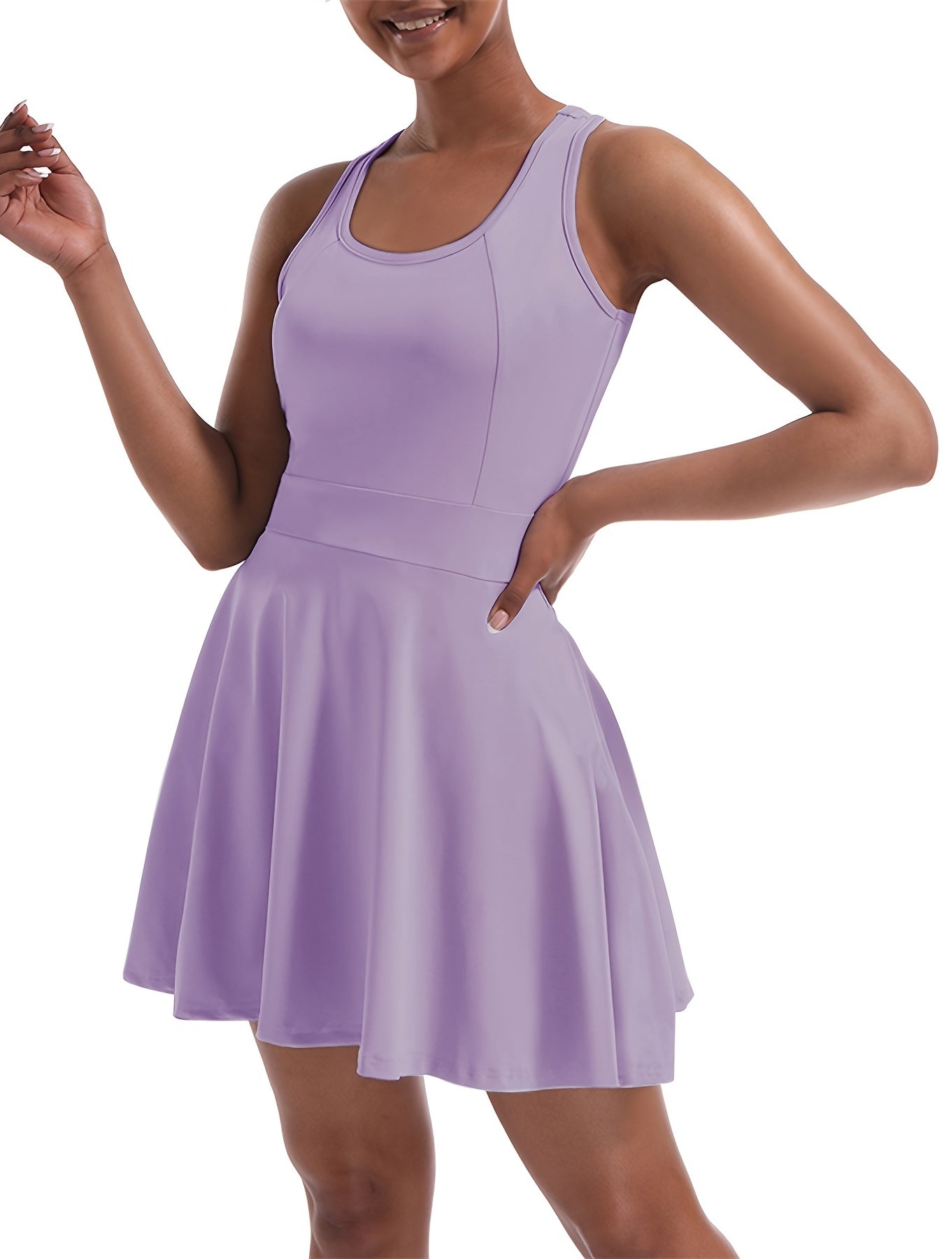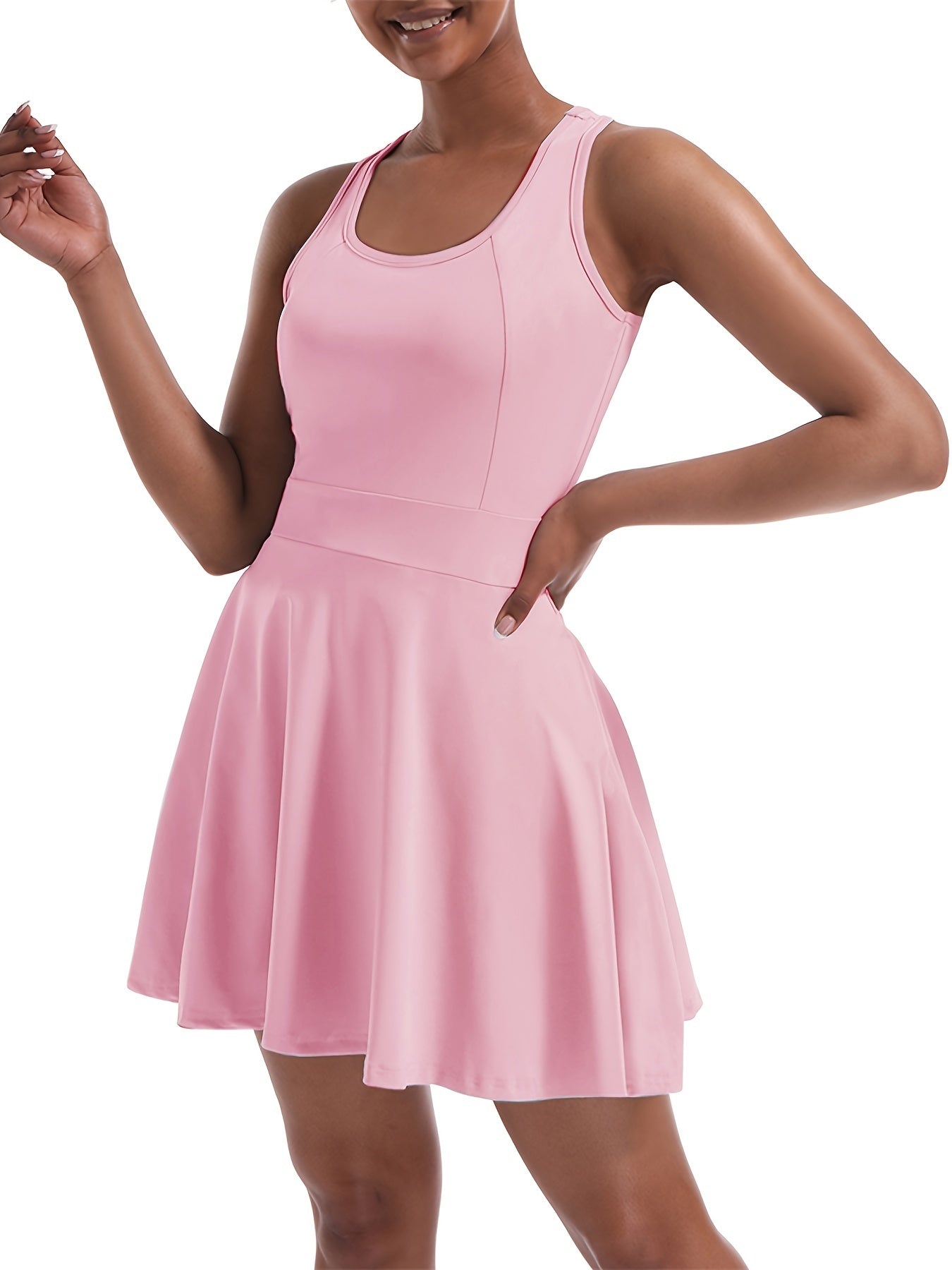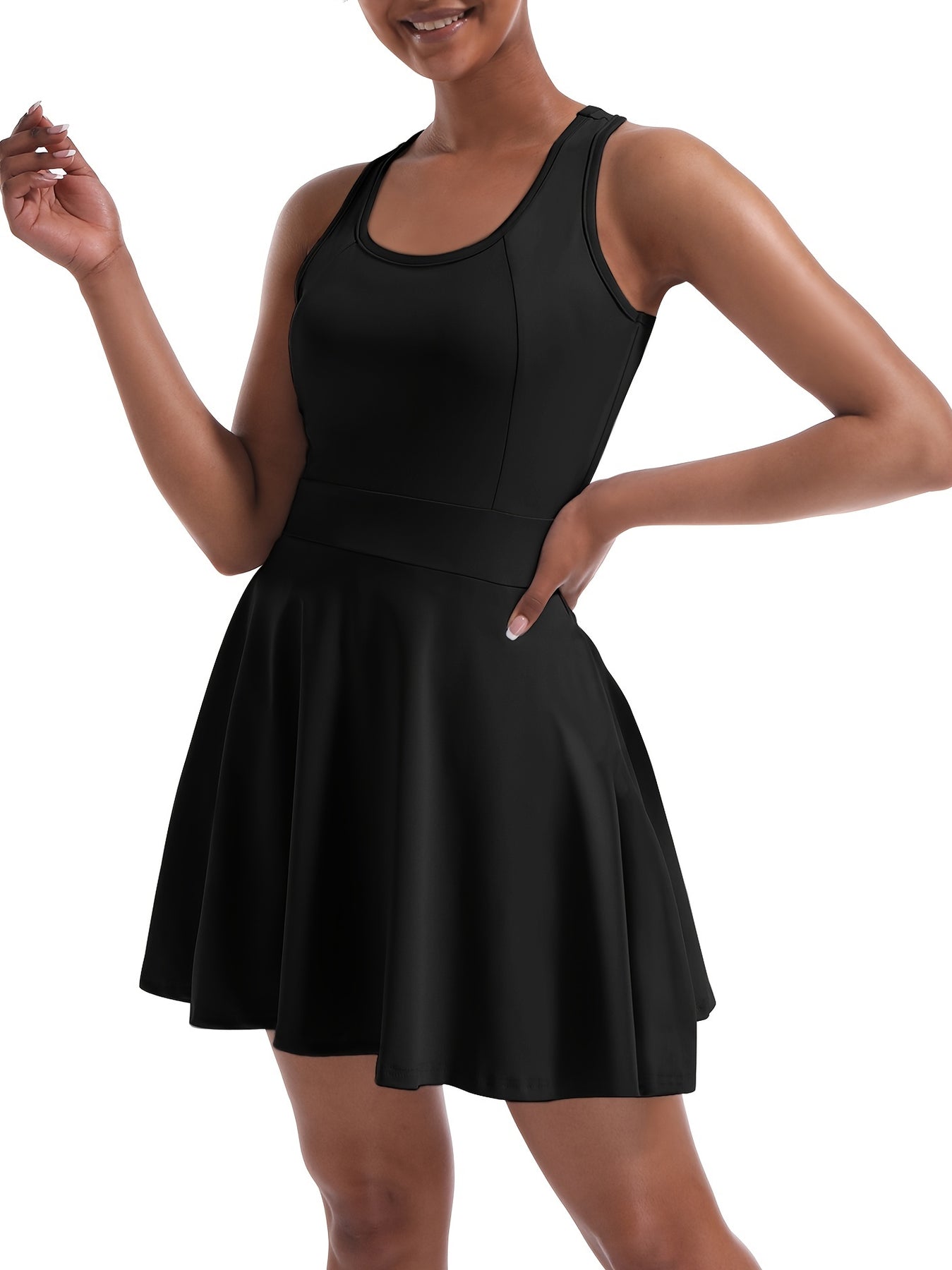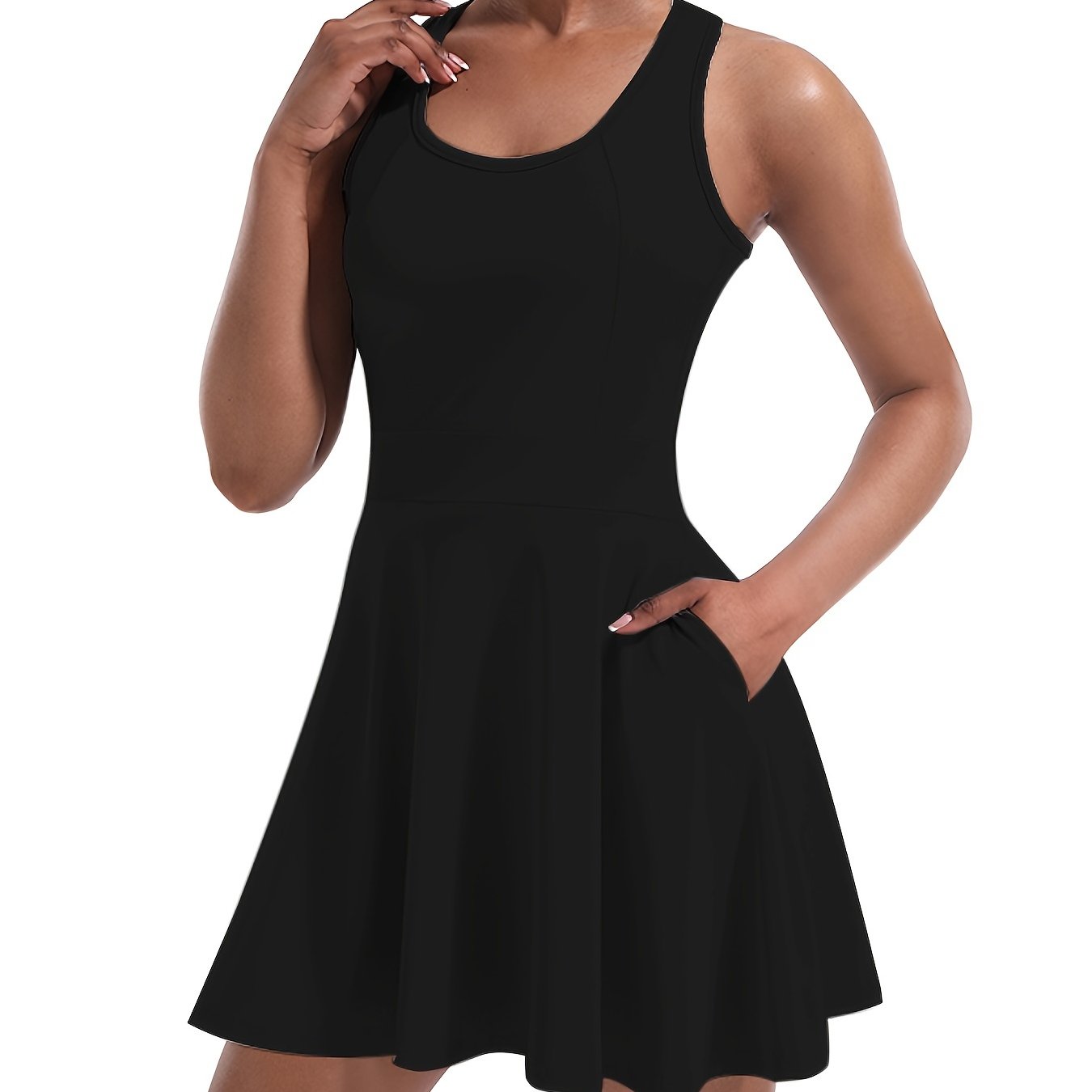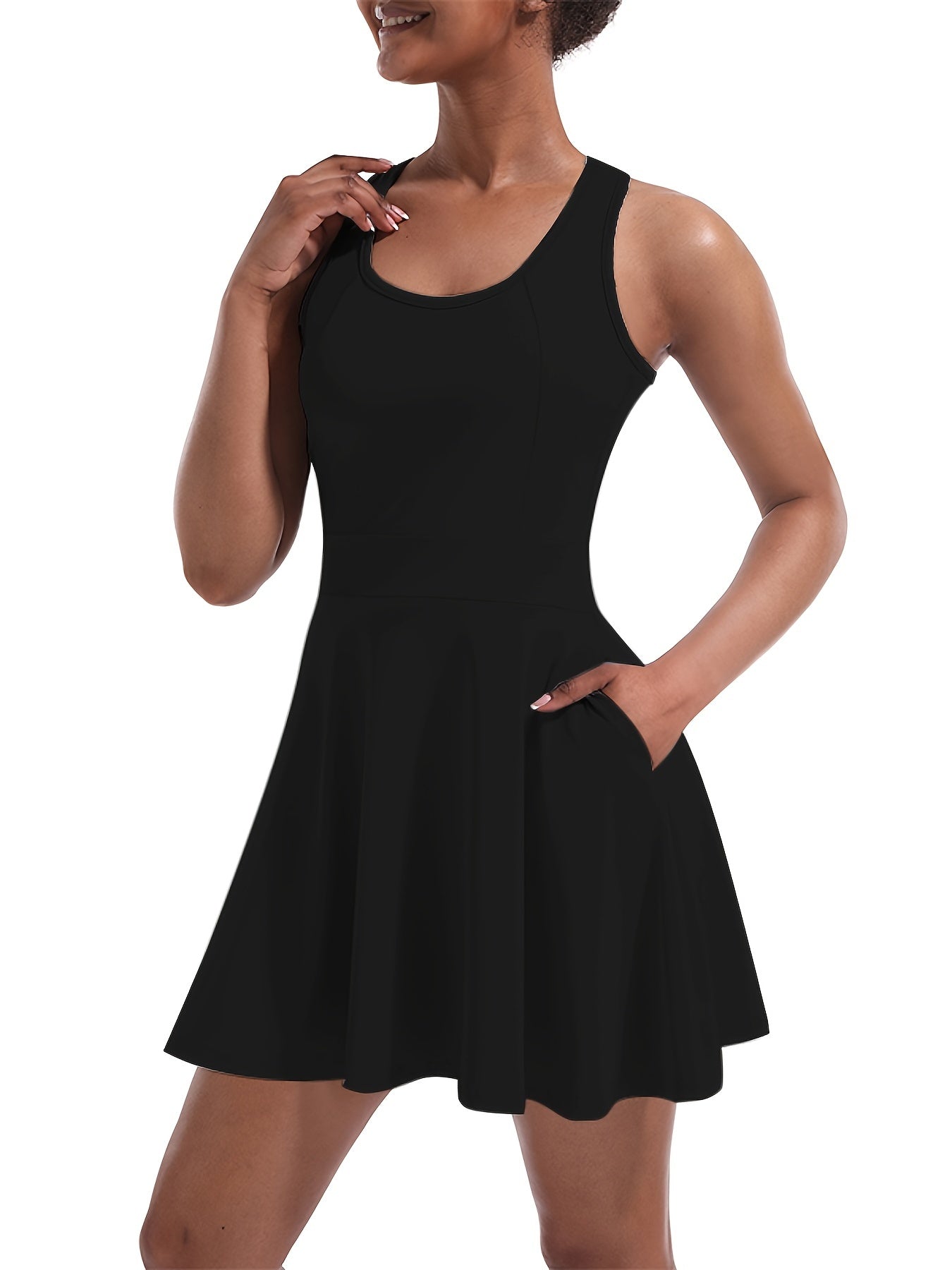 Racer Back Tennis With Pockets, Golf Dresses, Breathable Quick-drying Fitness One Piece Skirts, Women's Activewear