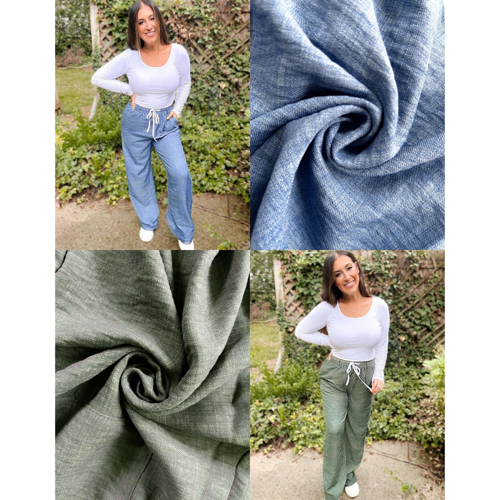 Every girl needs a staple pant - something she can grab quickly every day that is comfortable, stylish, & easy to style. Enter our new Chambray Wide Leg Pants! Their barely there feel combined with their casually chic design make them a must have! Non-stretch.