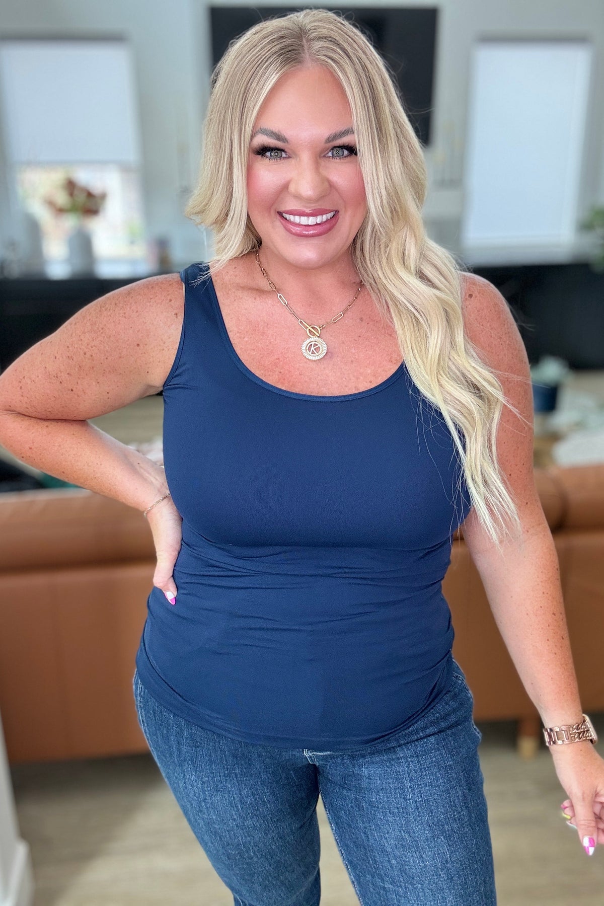 Discover timeless style with The Basics Reversible Longline Tank. Featuring seamless construction and a stretchy feel, this closet staple with a fitted silhouette allows endless styling options with both a v-neck and scoop neck reversible design. Experience versatile, comfortable fashion you'll never want to take off!