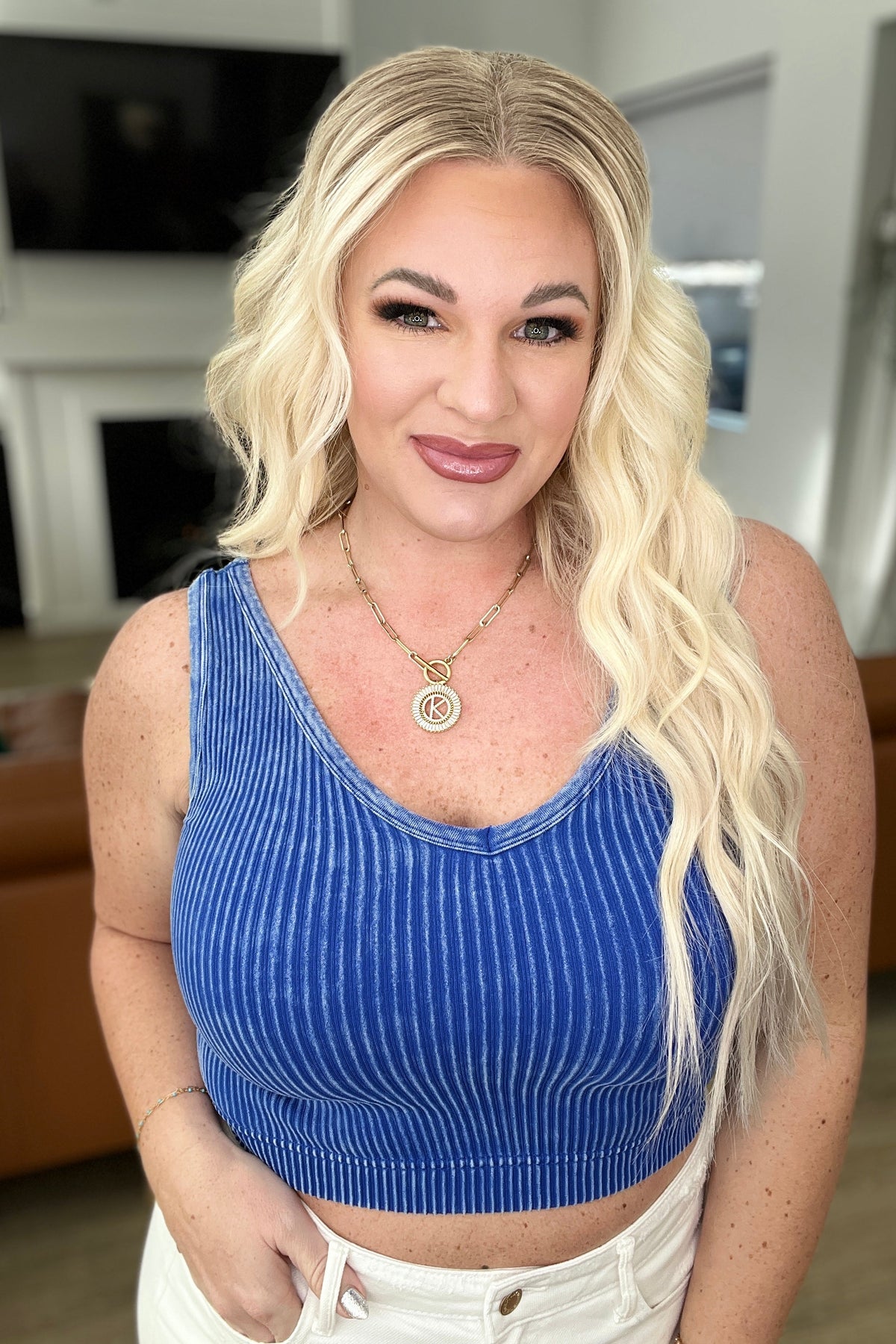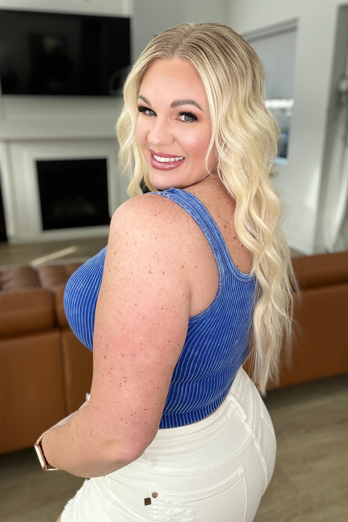 This Effortless Reversible Mineral Wash Ribbed Tank is perfect for those who value versatility and comfort. The unique mineral washed ribbed knit material is super stretchy and can be worn with either a scoop neckline or v-neckline. Whether used as a base layer or standalone piece, this tank is a must-have for any wardrobe.