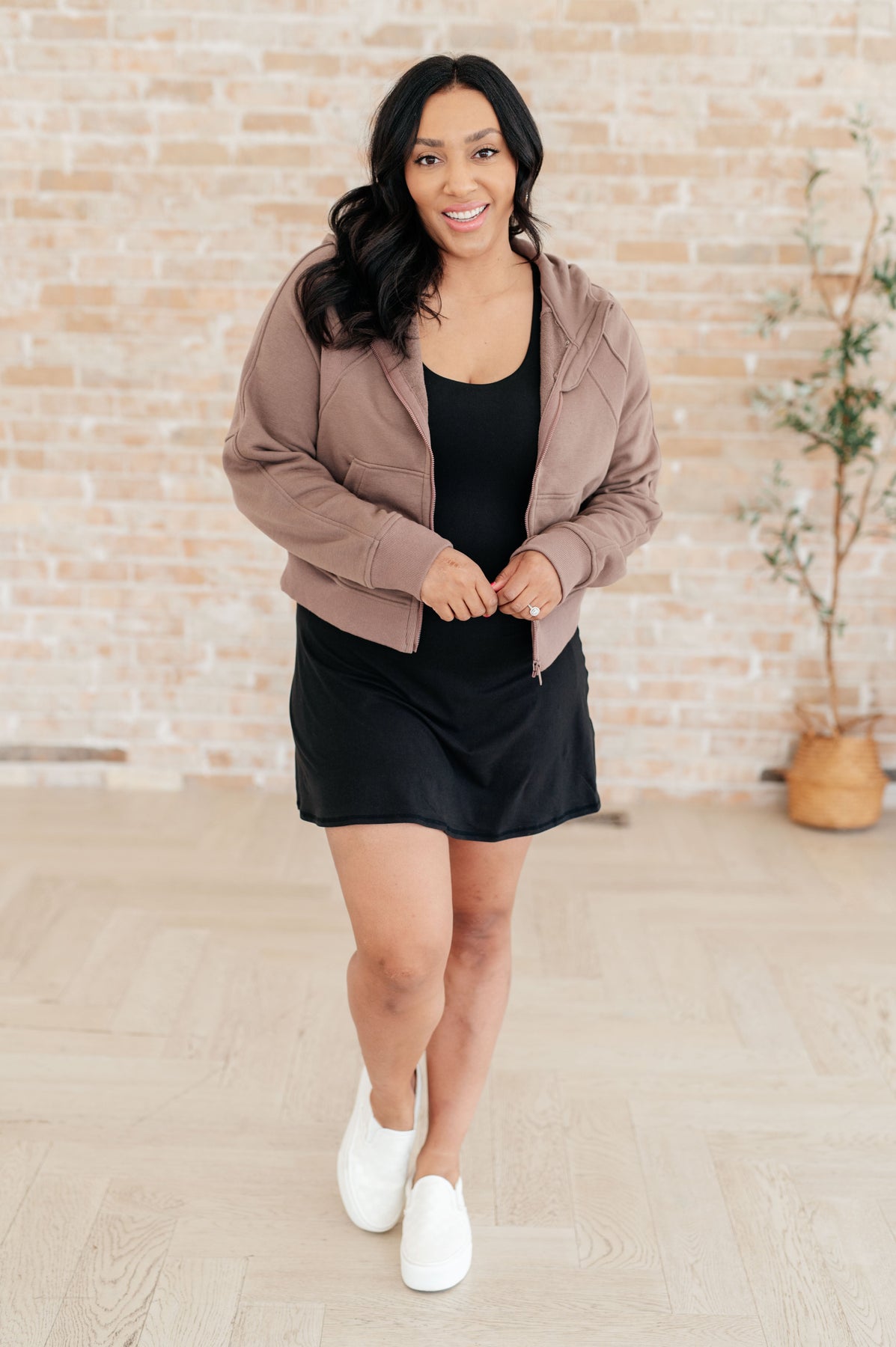 Look and feel amazing in our First Serve Dress! Made with brushed microfiber that is soft and comfortable. The scoop neckline and back cutouts add a touch of sass. Lined with removable cups for extra support. Functional skort pockets make this dress both stylish and practical.