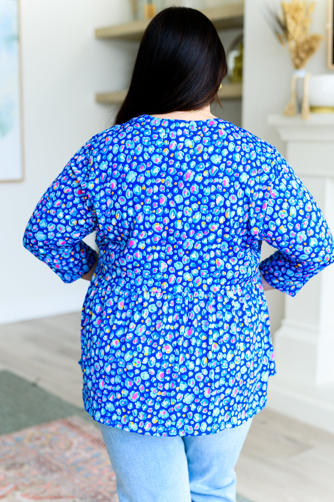 Introducing the Lizzy Babydoll Top - the perfect combination of style and convenience! Made with wrinkle-free bulgari fabric, this babydoll style top is perfect for any occasion. The v-neckline and gathered babydoll silhouette create a flattering look, while the 3/4 length sleeve adds a touch of elegance. And with its fun pattern, you're sure to stand out in a crowd.