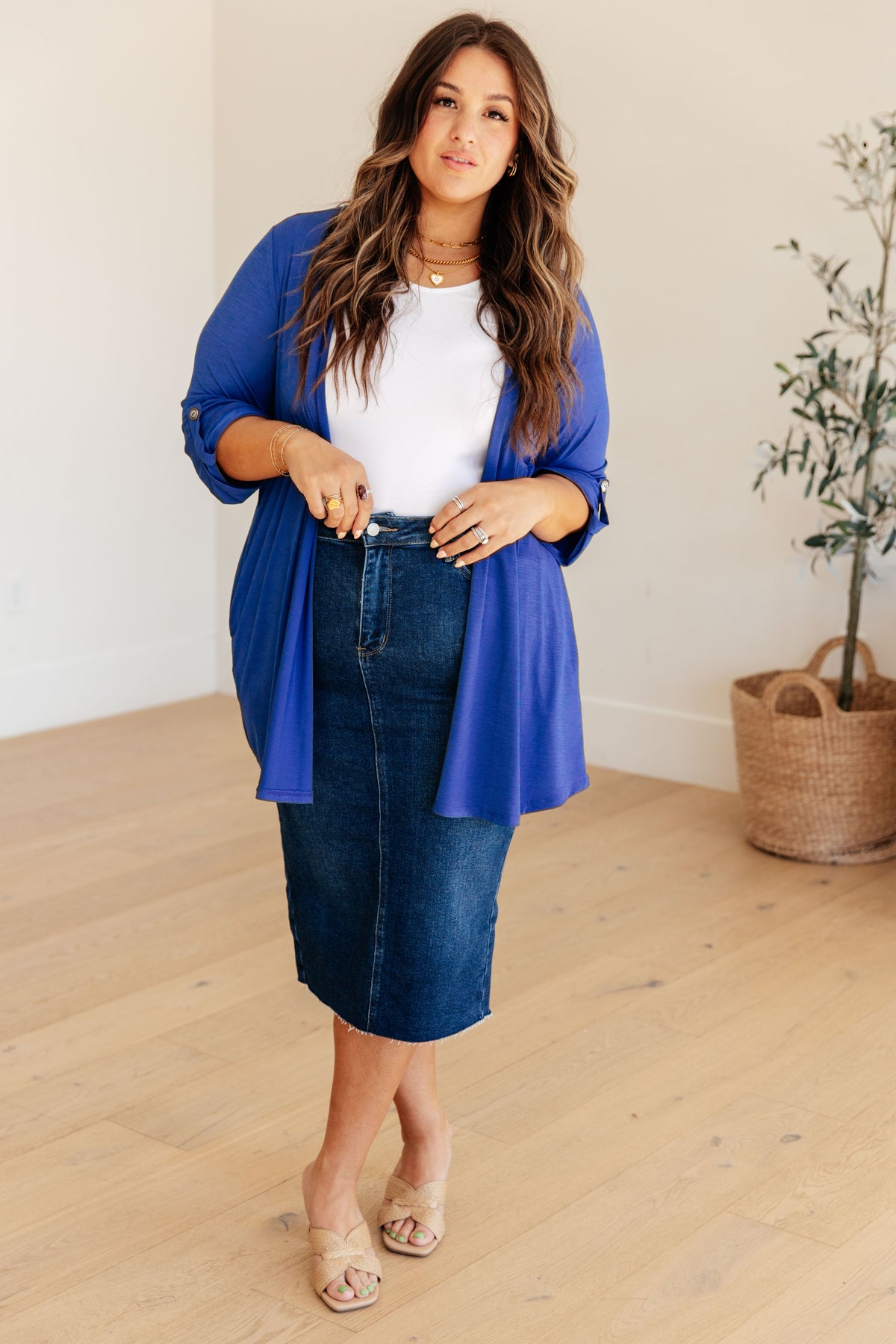 Introducing the Lizzy Cardigan in Magenta, the perfect blend of style and comfort. Stay cool with the Bulagri fabric and enjoy wrinkle-resistant and lightweight properties. Featuring faux button tab 3/4 sleeves, an open front, and a pleated back for a unique look. With functional pockets and a comfortable fit, this cardigan is a must-have. Order now for a fresh and playful look (and cozy comfort)!