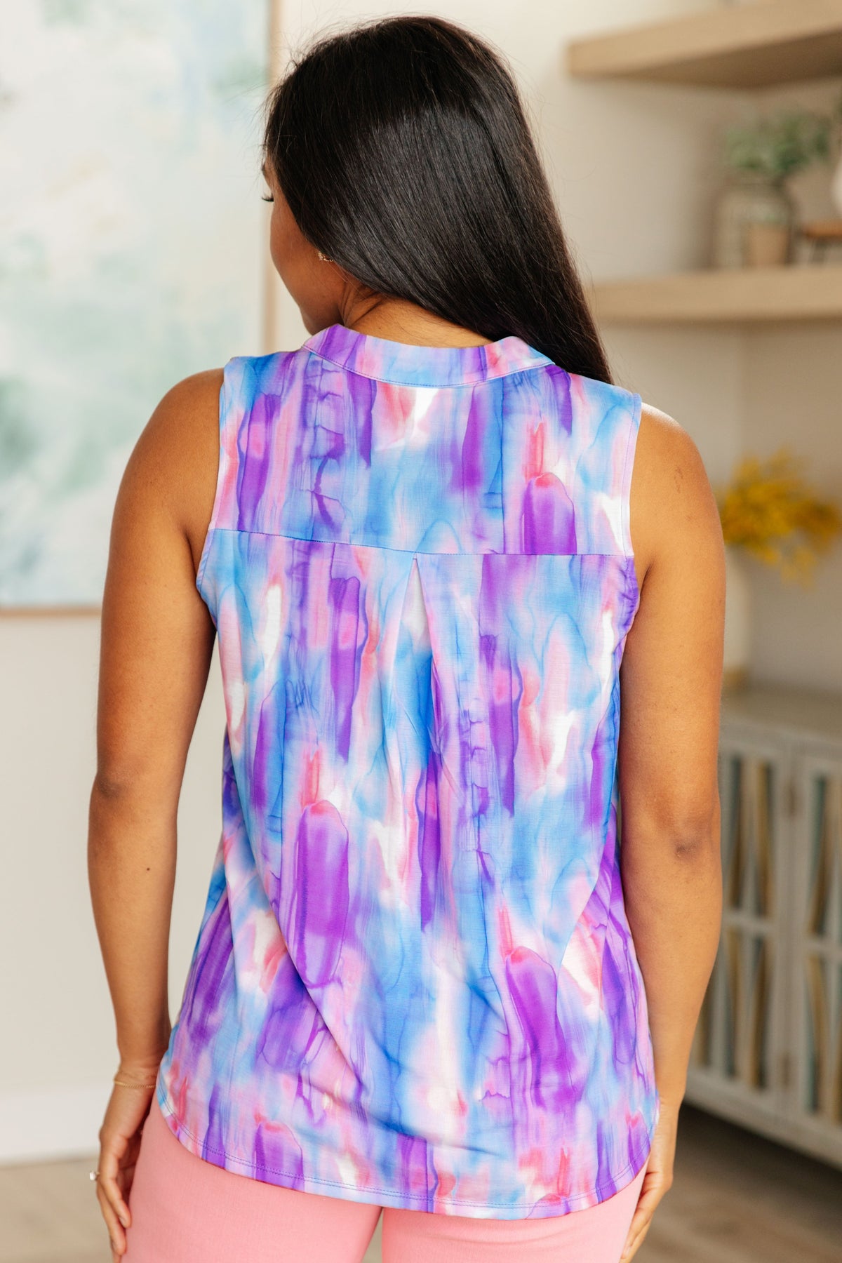 Lizzy Tank Top in Lavender and Blue Watercolor