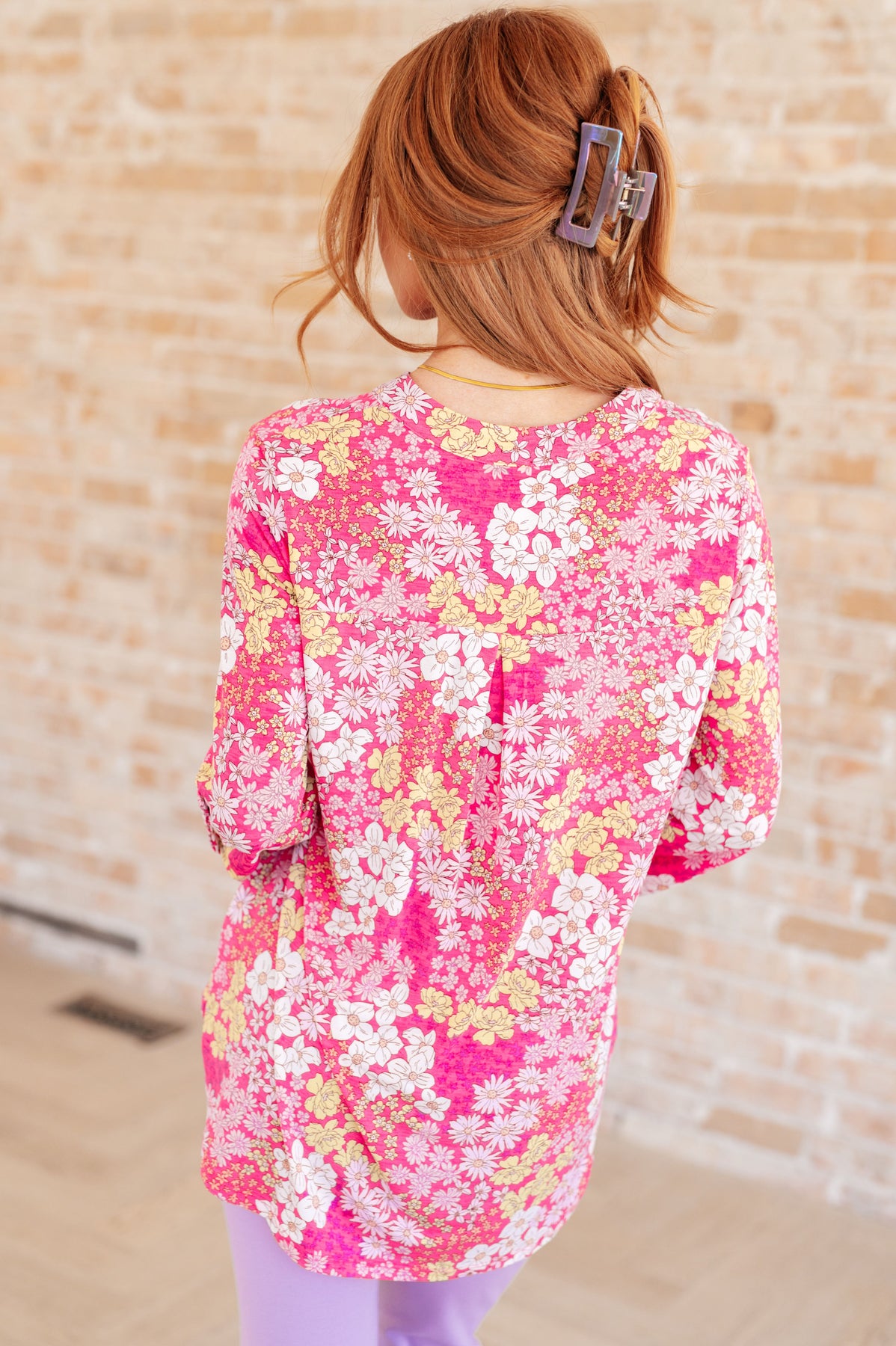 Lizzy Top in Hot Pink and Bubblegum Pink Ditsy Floral