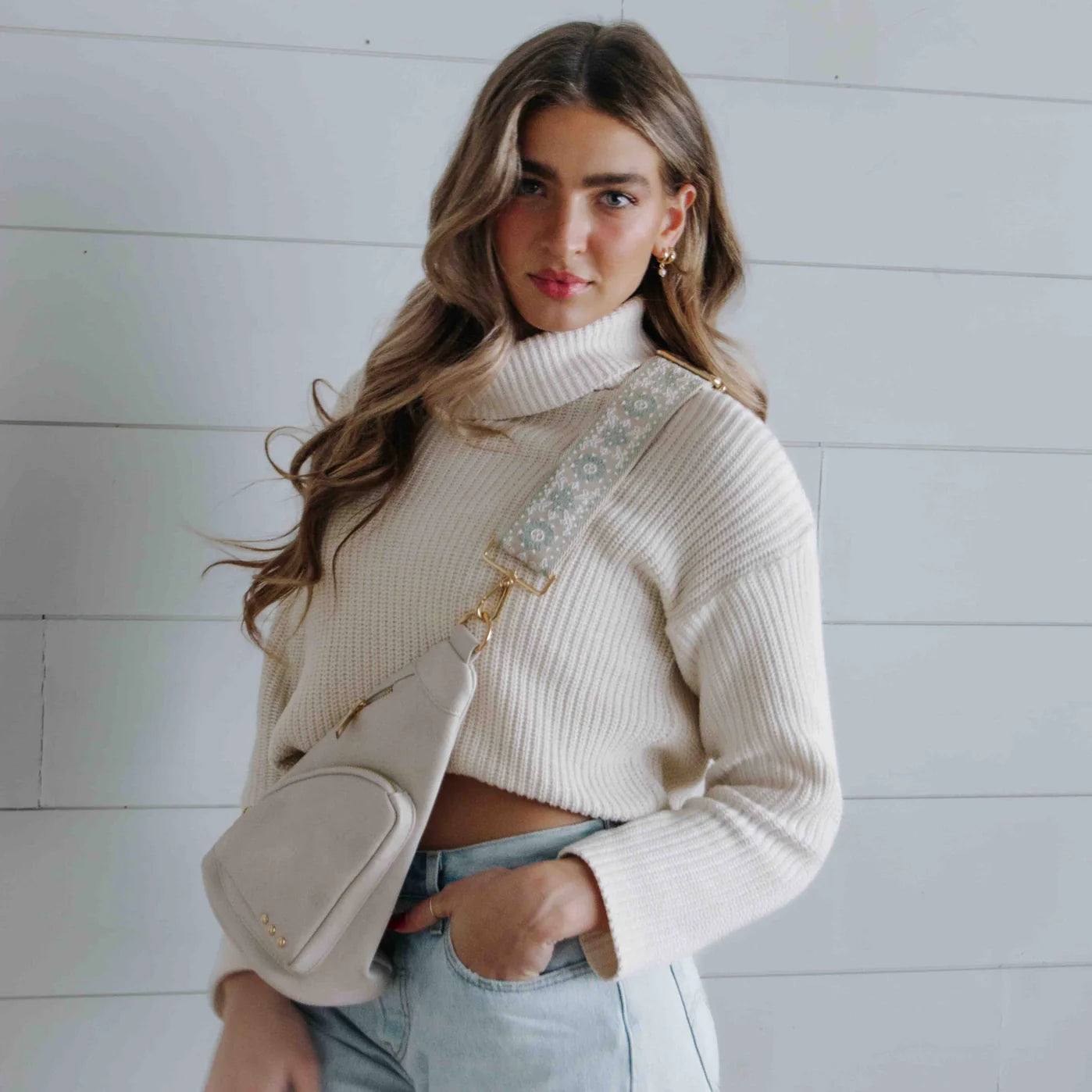 Meet our Austin sling bag! This beauty is the perfect bag to hold all of your things. There is a small front pocket for easy access items like keys, lip gloss, hair ties, etc. The large side pocket has a chevron pattern, and an additional slash zipper pocket.