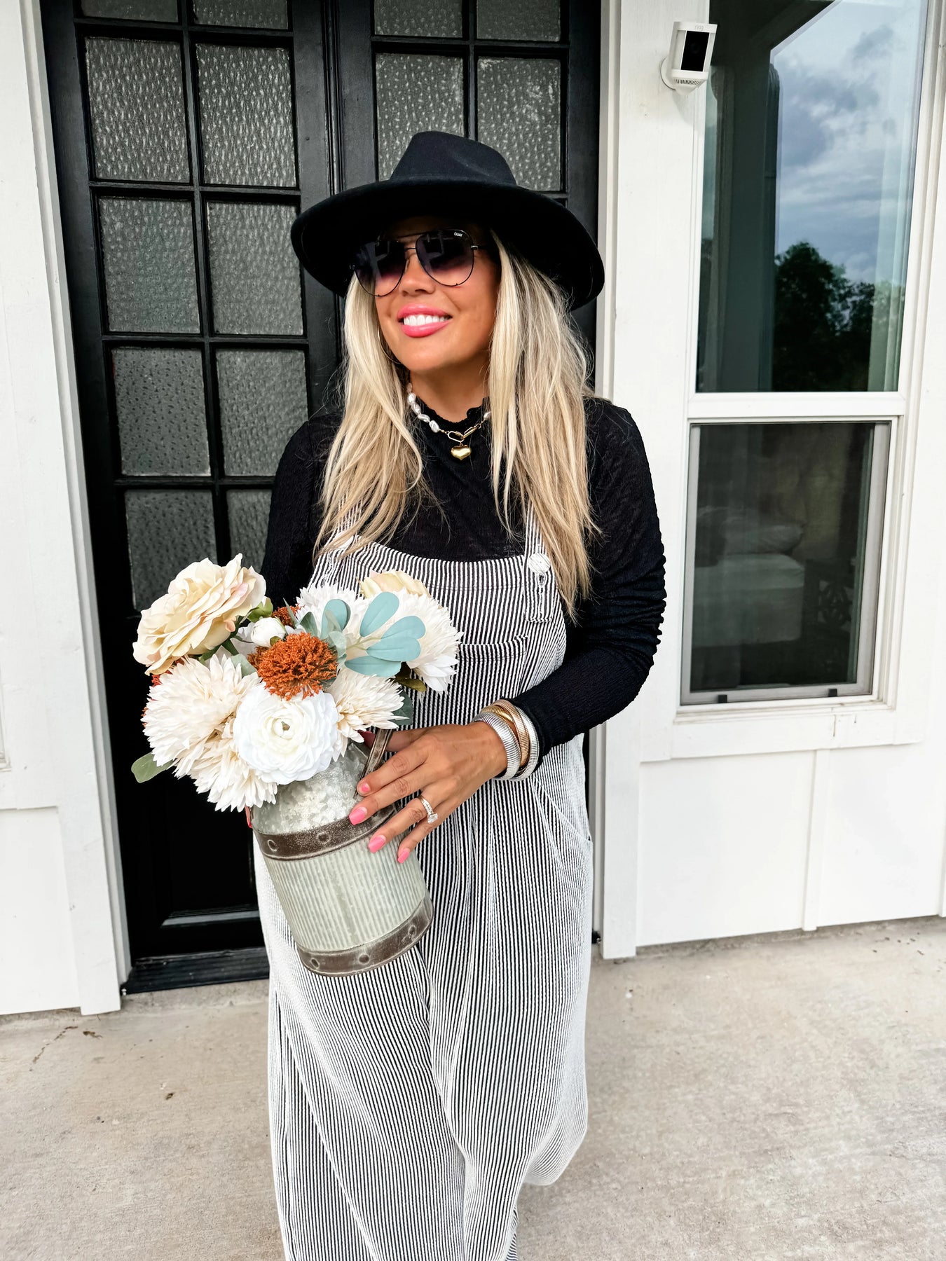 These viral boho overalls are back in gorgeous fall hues! Premium quality fabric ensures they are thick and not sheer. Features include pockets and an adjustable strap for fit, (fasten the button up or down to adjust length) complete with a stylish front pocket.