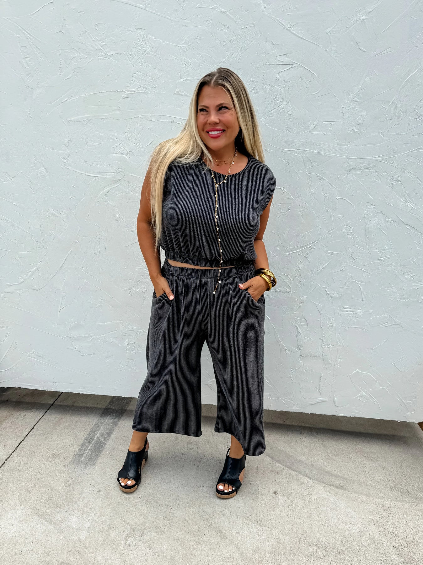 These sets feature a comfy elastic waist and cap sleeve top. Pants feature an elastic waist with flattering drapey front pockets. This stylish set is SO soft, stretchy and cozy you will want to live in it!