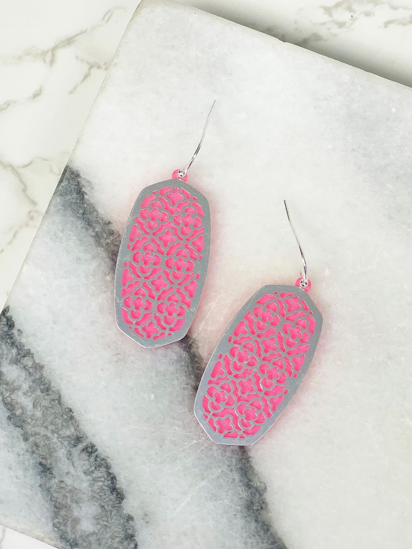 PREORDER: Metal Acrylic Quatrefoil Dangle Earrings in Two Colors