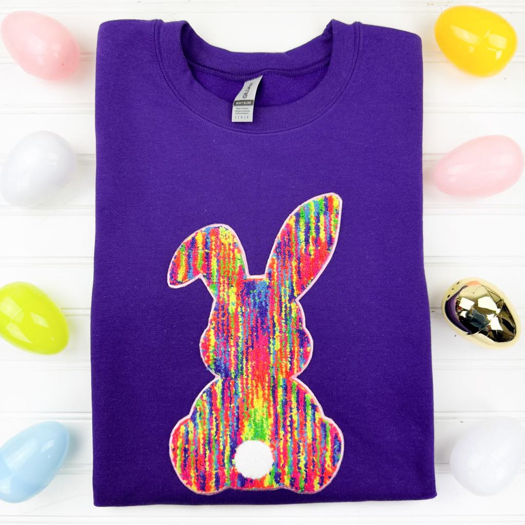 The cutest chenille patch sweatshirt to celebrate the spring and Easter season!