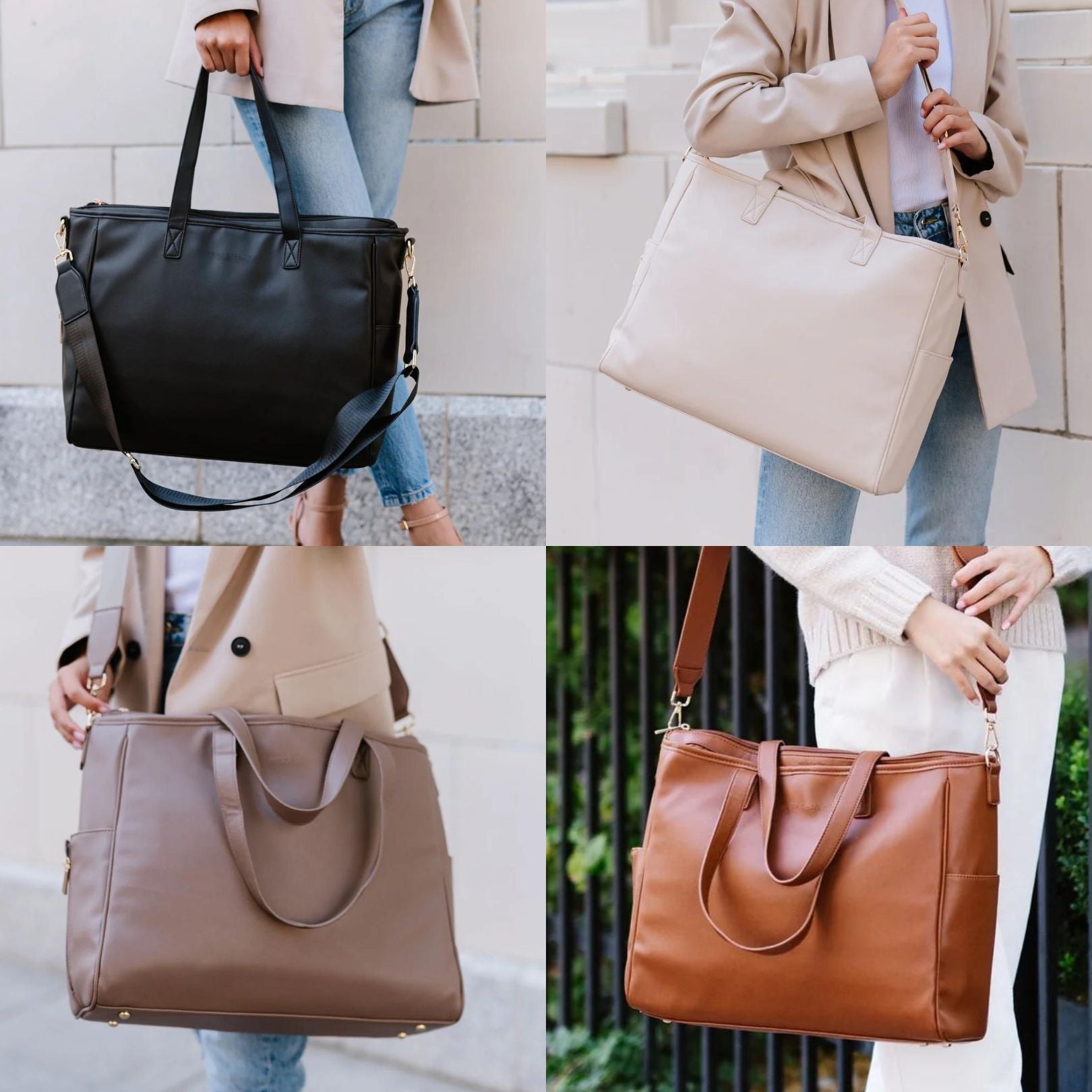 Simplify life on the go with the signature tote. Chic, versatile, and functional, we designed this vegan leather tote with your busy lifestyle in mind. It can be used for anything— commuting, travel, a diaper bag, or an everyday tote. With organization galore, everything will have a place in this spacious carryall.